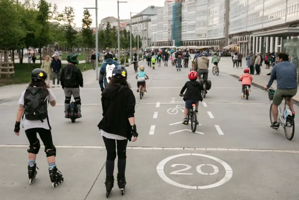 A partir das 21.45 horas, e coa praza de Pontevedra como punto de partida, iniciarase un percorrido polas rúas da Coruña, aberto á cidadanía, no que poderá participar calquera persoa que circule con patíns ou, en termos xerais, sobre vehículos non contaminantes como bicicletas, patinetes e táboas de skate.