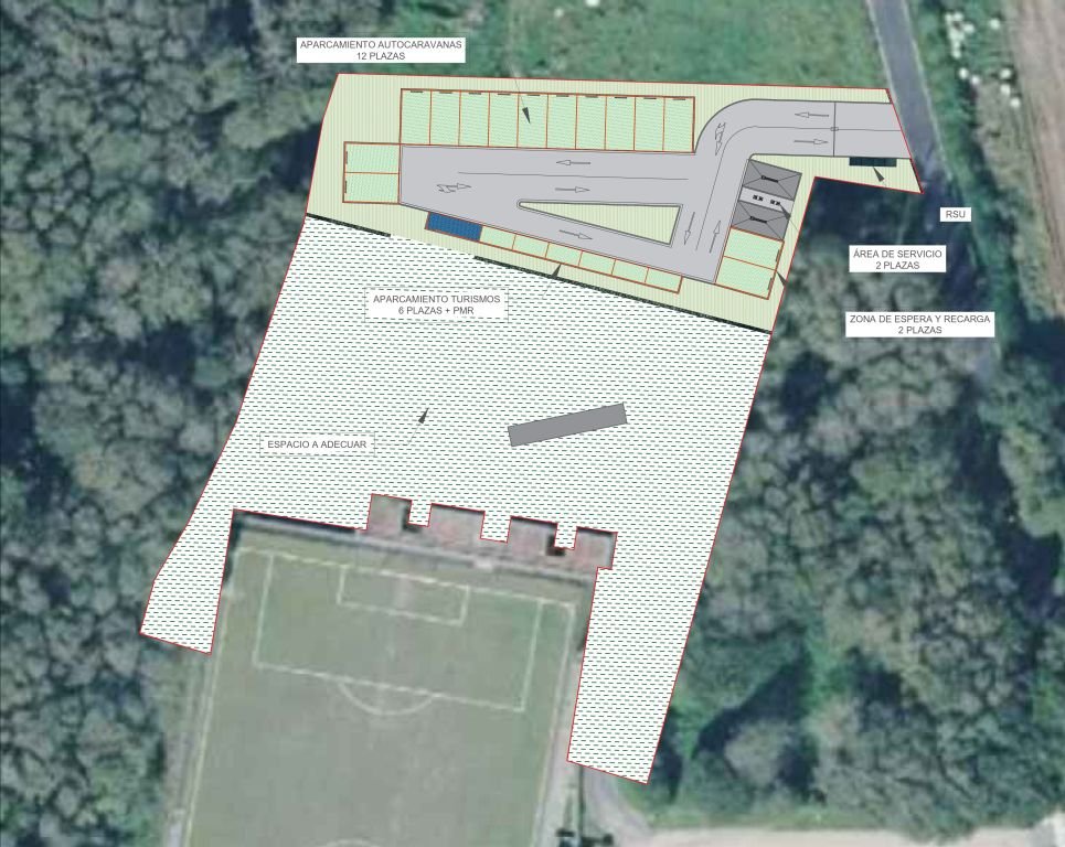 A actuación permitirá acondicionar unha parcela municipal no lugar das Agras, colindante co campo de fútbol, cunha superficie de preto de 6.000 metros cadrados para a creación dunha área específica destinada ao estacionamento e servizo de autocaravanas, reforzando a oferta turística sostible do municipio e da comarca.