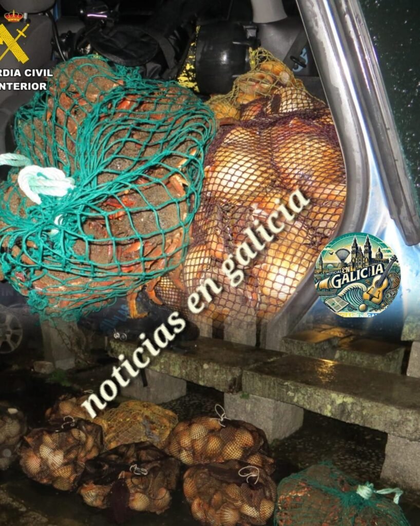A Garda Civil do Posto de Mugardos en colaboración coa Garda Civil do Posto de Fene incauta 175 quilogramos de vieiras e 25 de centolas en Mugardos.