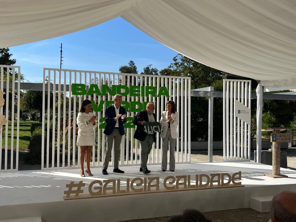 O tenente alcalde, José Ramón Martínez Barbeito, recolleu hoxe a bandeira de mans do presidente da Xunta de GaliciaXunta de GaliciaXunta de Galicia, Alfonso Rueda Valenzuela, e da conselleira da Consellería de Medio Ambiente e Cambio Climático, Ángeles Vázquez, no acto celebrado no concello pontevedrés de Mos.