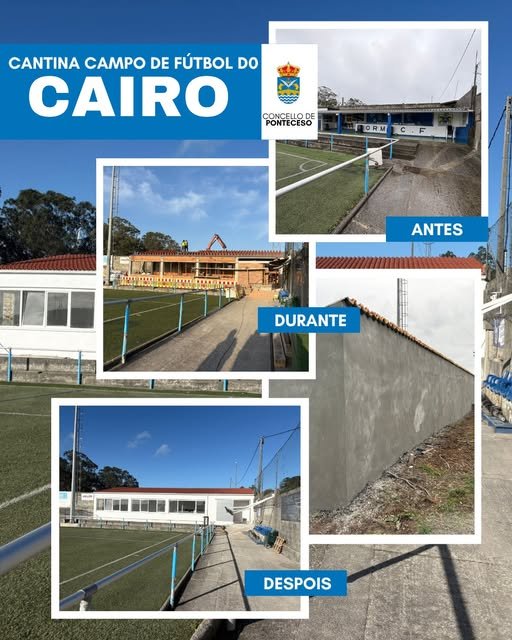 O campo de fútbol do Cairo de Corme-Porto conta xa cunha cantina completamente renovada. Todo grazas ao proxecto que o Concello executou en colaboración coa Secretaría Xeral para o Deporte e que supuxo un investimento de 59.125 euros. Con todo, esta non será a única mellora prevista nas instalacións deportivas municipais, senón que o alcalde, José Manuel Mato, avanza que se continuará con esta liña de traballo: «queremos que os nosos deportistas poidan dedicarse ás súas disciplinas nas mellores condicións posibles, polo que traballaremos para seguir mellorando as distintas dependencias».