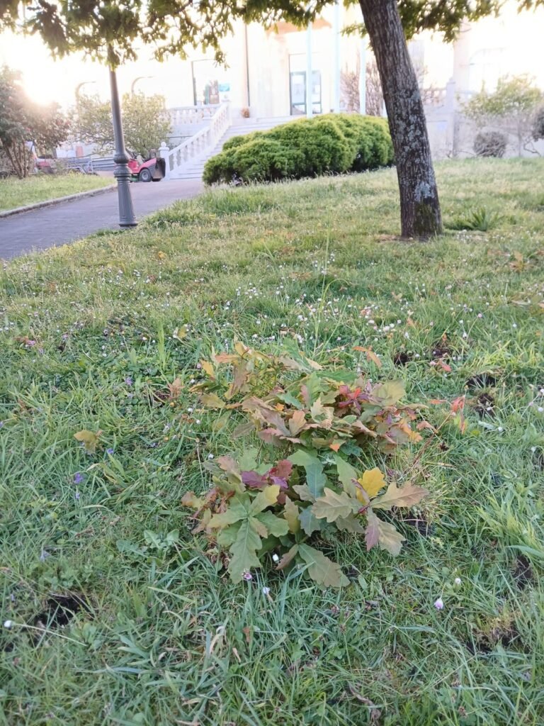 A natureza agasállanos ás veces con pequenos milagres de vida no medio da nosa contorna urbana. Este ano, o emblemático e fértil carballo dos xardíns da Casa do Concello amosou a súa faceta máis xenerosa ao sementar de xeito natural máis dun cento de pequenos arboliños que naceron baixo o acubillo da súa copa protectora.