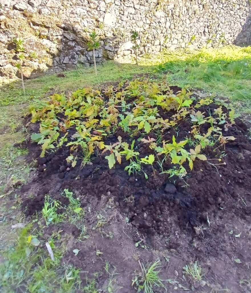 As plantiñas, que ata agora medraban espalladas pola herba e as margaridas, foron trasladadas con sumo coidado a un viveiro provisional creado especificamente para elas nunha zona protexida por muros de pedra e con terra ricamente nutrida. Alí, os operarios encargaranse de que medren fortes e ben nutridos durante os vindeiros meses.