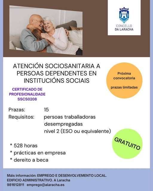 O Concello inicia o procedemento de selección do alumnado da nova acción formativa para desempregados (AFD) centrada na atención sociosanitaria a persoas dependentes en institucións sociais que se vai realizar na Laracha: