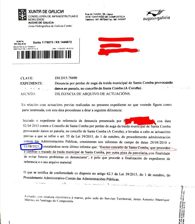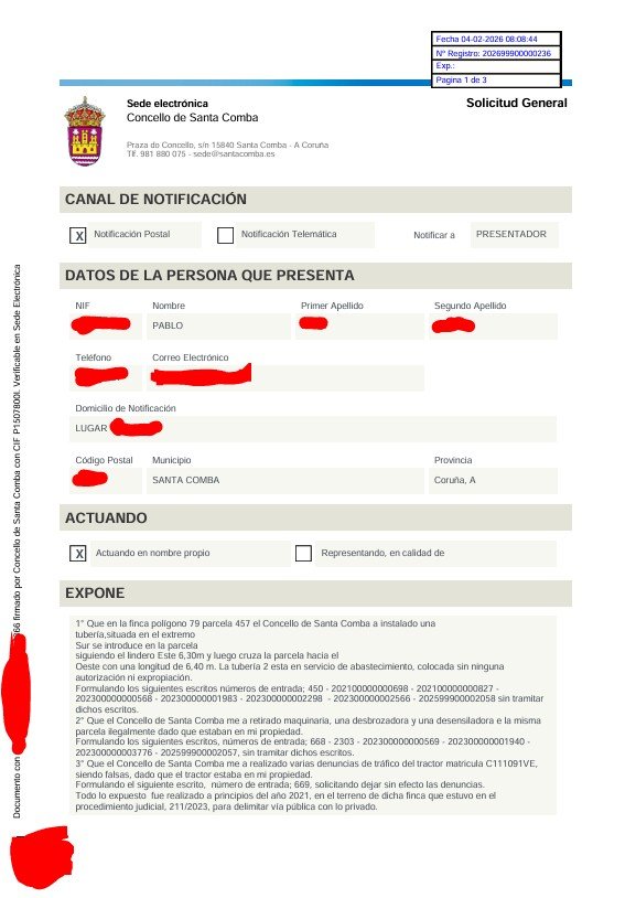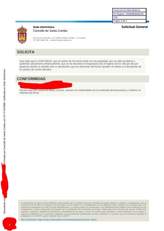 Na última semana, o veciño volveu rexistrar nova documentación no Concello para que sexa incorporada ao expediente, insistindo na necesidade de que se revisen os feitos e se adopten as medidas correspondentes conforme a dereito, adjuntando a este diario varios documentos que aporta al Concello, para así demostrar su veracidad.