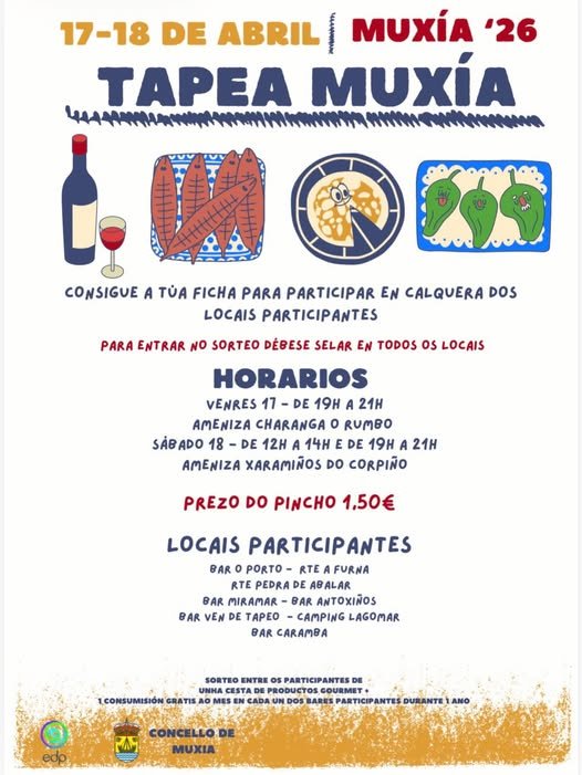 Este 17 e 18 de abril, ven gozar do mellor tapeo polos locais de Muxía.