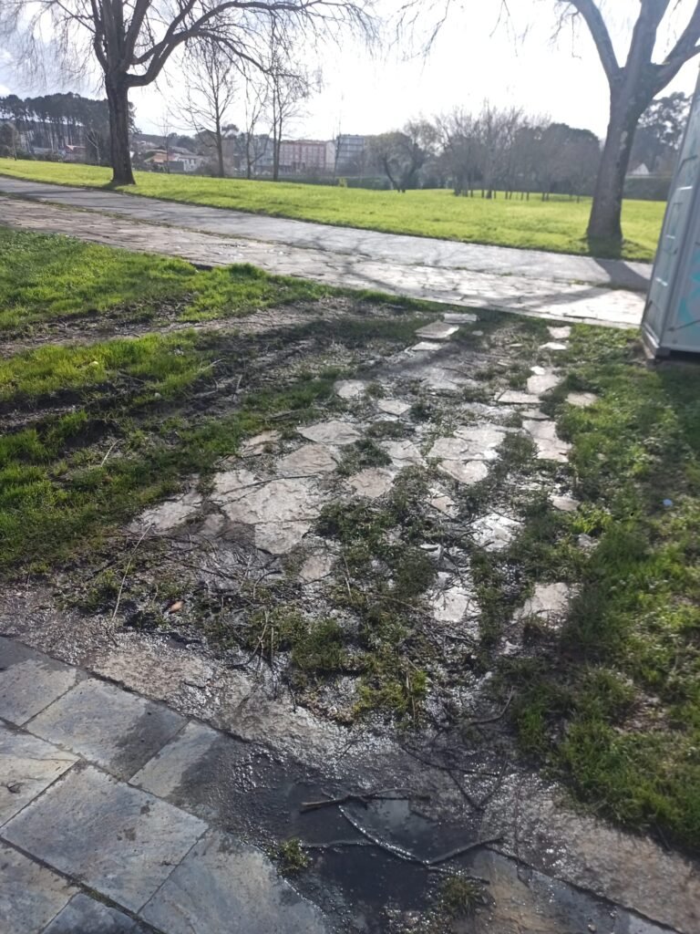 Nas últimas horas, un veciño fixo chegar varias fotografías nas que se pode comprobar o grave deterioro do paseo. As imaxes amosan mobiliario urbano roto e oxidado, bancos inutilizables, papeleiras danadas, pozancas de auga ao longo do percorrido, barro acumulado e zonas impracticables para peóns. A esta situación súmaselle a falta de limpeza, coa presenza de lixo, herba medrando sen control en beirarrúas e zonas verdes, así como numerosos grafitis que contribúen á sensación de abandono xeneralizado.