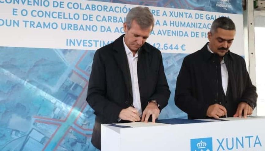 O alcalde de Carballo, Daniel Pérez, e o presidente da Xunta de Galicia, Alfonso Rueda, asinaron este xoves un convenio de colaboración para acometer as obras de urbanización da avenida de Fisterra. A actuación ten un orzamento de 2 millóns de euros, que serán financiados nun 70% pola Xunta e nun 30% polo Concello, que tamén se encarga da redacción do proxecto e asumirá a titularidade da vía, que nestes momentos é autonómica.