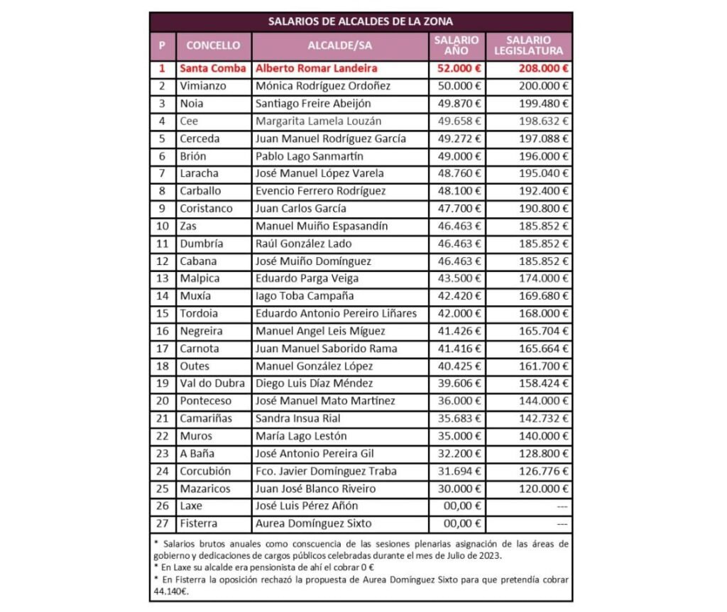 O Alcalde de Santa Comba cobra maís que os alcaldes de Carballo, A Laracha e Noia