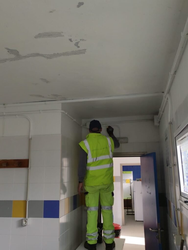 Despois de proceder ao cambio do teito dos vestiarios da Arliña —unha actuación moi demandada—, seguimos avanzando e hoxe iniciamos o pintado dos vestiarios do campo de fútbol 🏟️