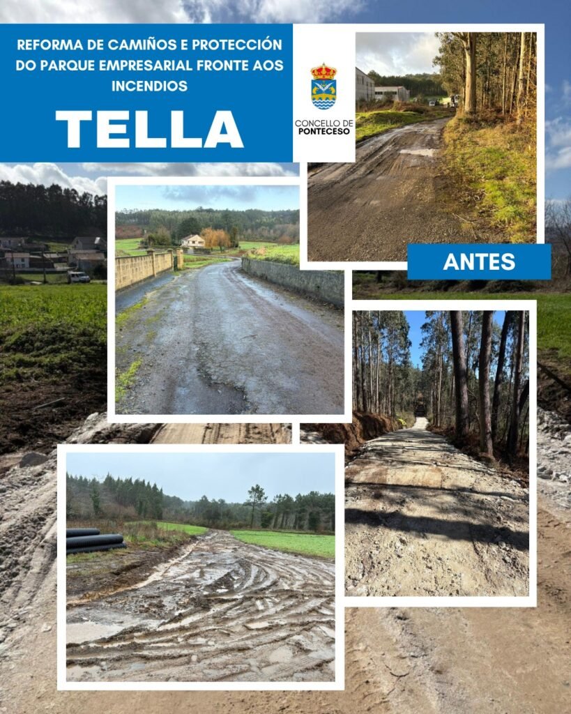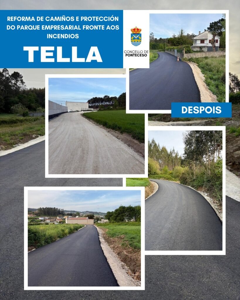 O Concello de Ponteceso vén de finalizar as obras de mellora dos camiños da zona de Tella, unha actuación na que se investiron preto de 115.000 euros e que supón un avance significativo tanto en materia de seguridade como de mobilidade.