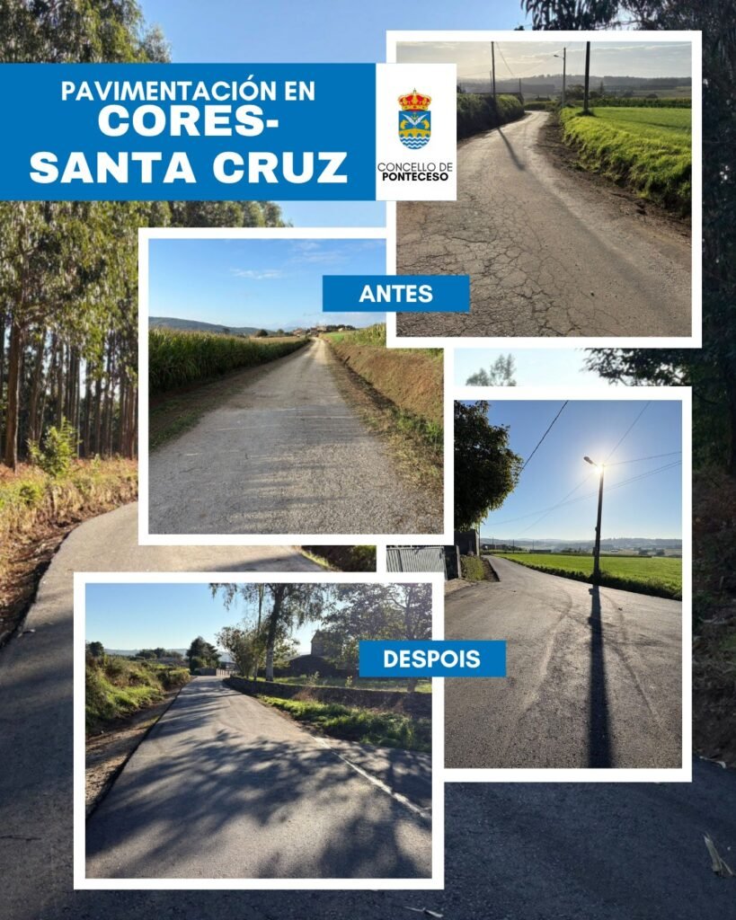 O Concello reforza a seguridade viaria entre Cores e Santa Cruz coa nova pavimentación en ambas localidades.