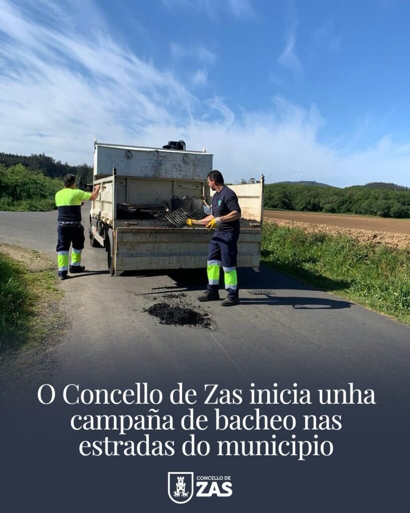 O Concello de Zas, a través da súa brigada de obras, está a desenvolver estes días unha nova campaña de bacheo nas estradas municipais co obxectivo de mellorar a seguridade viaria e o estado xeral da rede de comunicacións locais.