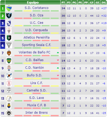 O Sd Coristanco gañou 0-4 na sua visita contra o penúltimo clasificado e o seu perseguidor o Oza gañou 4-1 contra o Atletico Pereiriña.