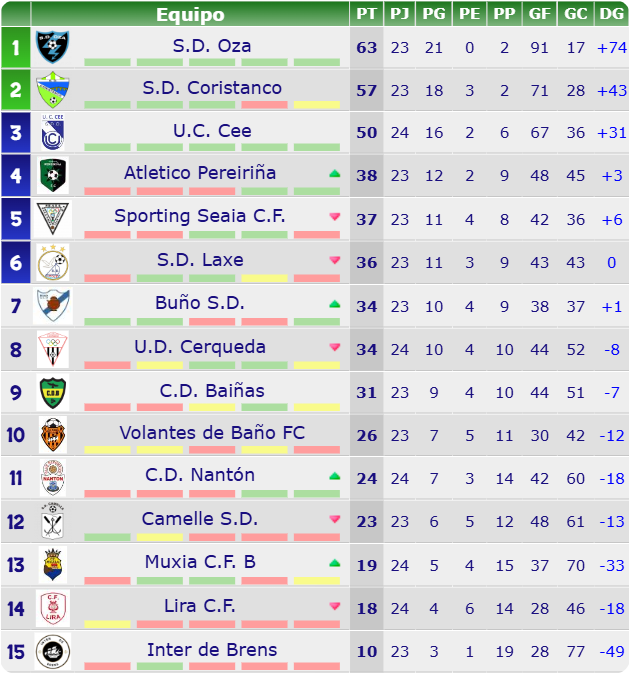 A xornada deixa así un Oza máis líder e unha clasificación que comeza a marcar diferenzas tanto na zona alta como na baixa.