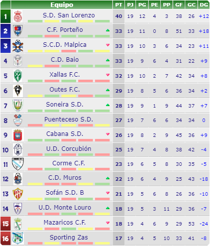 O S.D San Lorenzo gaña 4-1 no Derbi de Carballo e segue aumentando distancia no liderato , o Porteño deulle un baño o Corcubión 9-2 e ponse 2º na táboa.