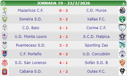O Malpica empata na súa visita a Monte Louro, O xallas perdeu 3-2 contra o Soneira e o Baio gañou 2-1 o Corme.