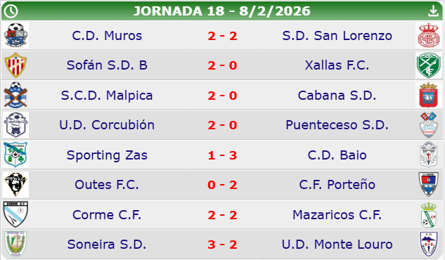 O SCD Malpica gañou con claridade 2-0 O Cabana, mentres o San Lorenzo empatou 2-2 na sua visita a Muros. O Xallas Perdeu 2-0 ante o Sofán B en Carballo.