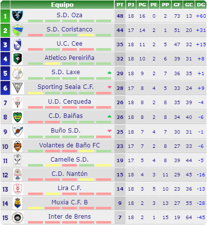 O SD Oza segue líder indiscutible e gañando con autoridade , 9-1 ante o Muxía B , Mentres o Coristanco segue a 4 puntos logo de Gañar 0-2 en Seaia. Terceiro e o Cee que gañou 0-2 en Buño.