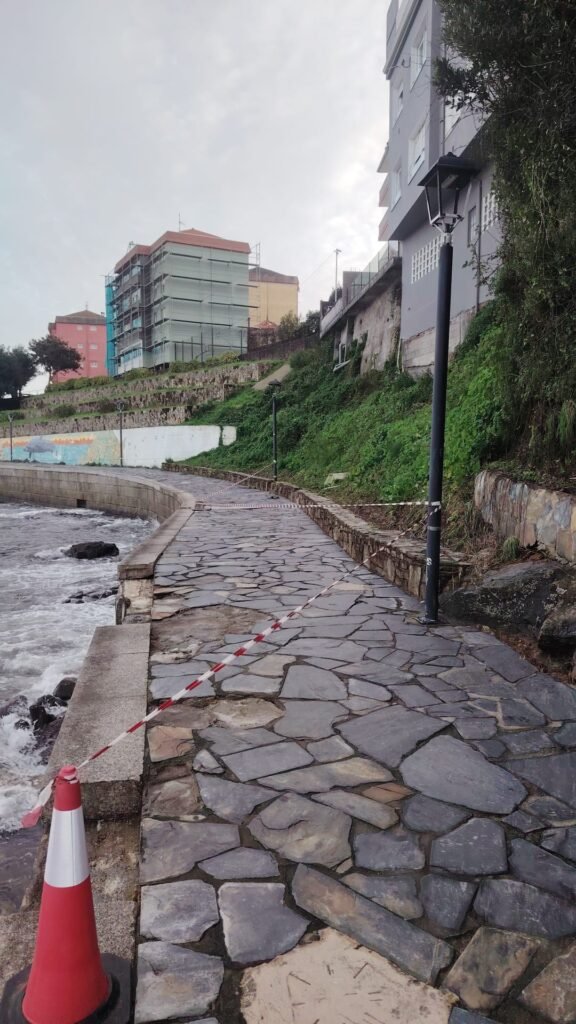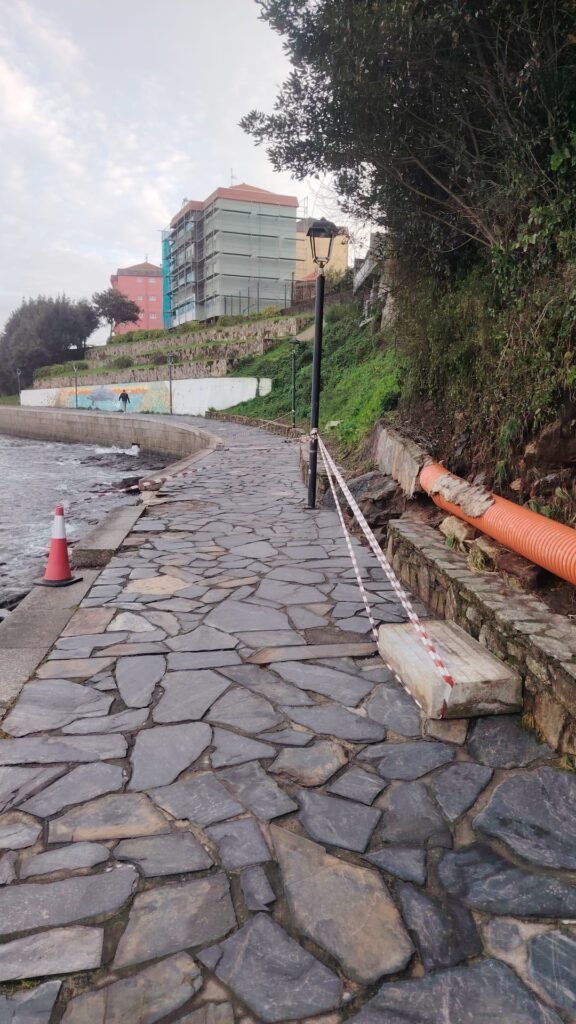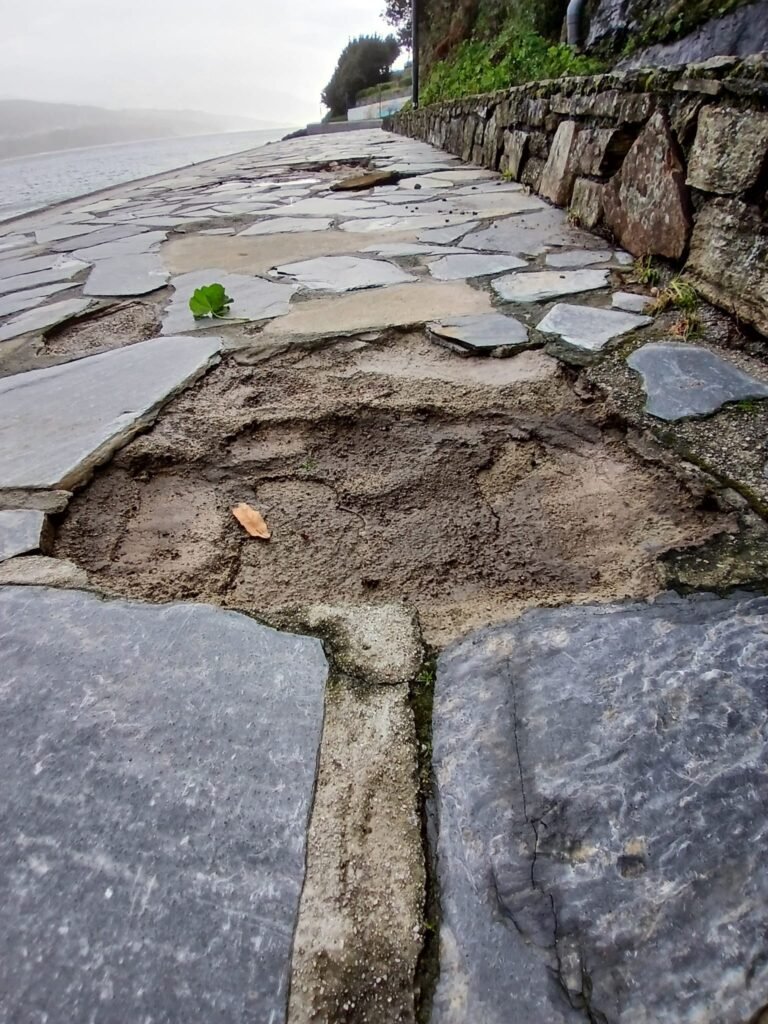 Procederase de urxencia a acometer os traballos de reparación dos desperfectos causados polo temporal, co obxectivo de restablecer canto antes as condicións de seguranza no paseo.