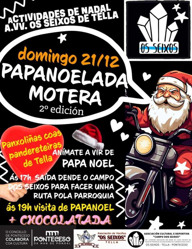 A Asociación de Veciños Os Seixos e a Asociación Cultural e Deportiva Campo dos Seixos organizan, en colaboración co Concello de Ponteceso, unha Papanoelada moteira o