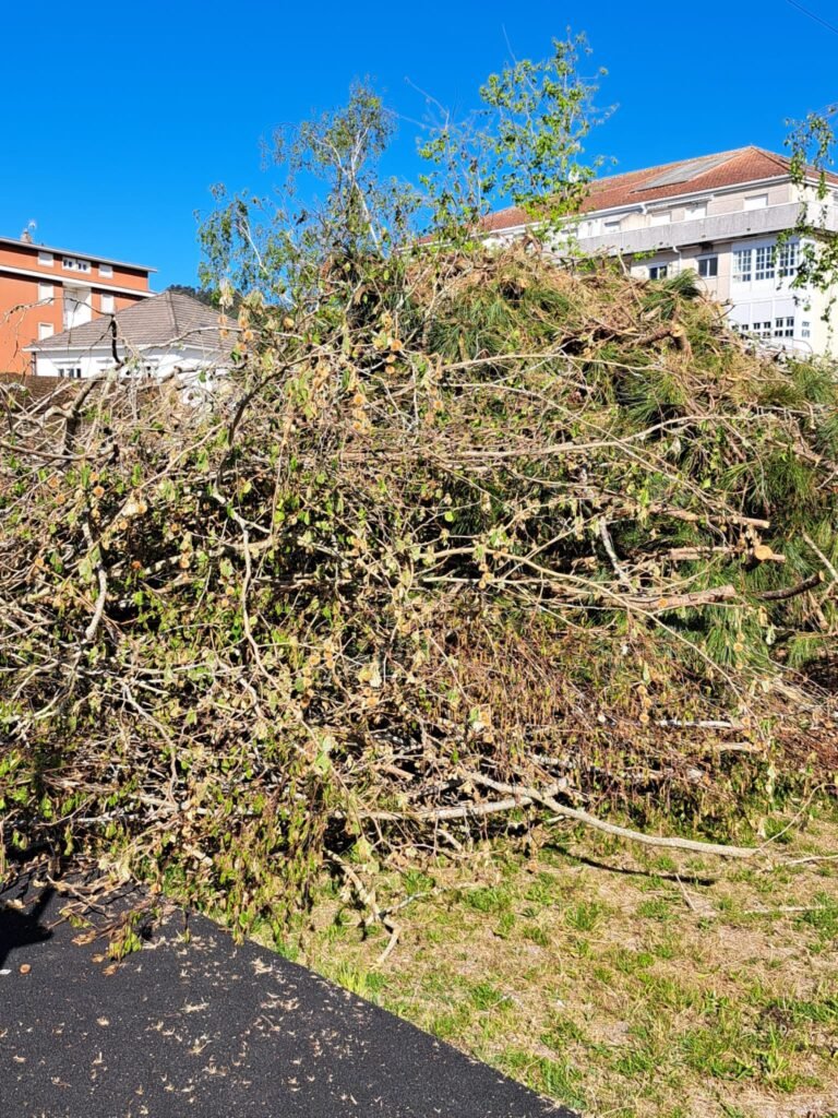 Nos últimos días, as tarefas centráronse no CEIP Ricardo Tobío, onde se procedeu á tala de exemplares que presentaban mal estado, estaban secos, podres ou afectados por algunha enfermidade. En concreto, retiráronse tres exemplares de Populus nigra e seis piñeiros situados na contorna do antigo edificio de Educación Primaria.