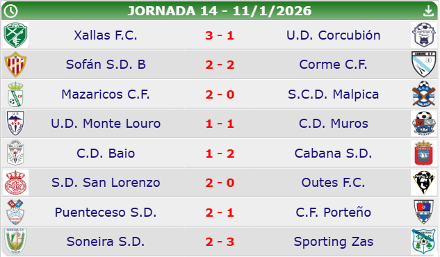 O Xallas manten a 31 posición despois de vencer o Corcubión 3-1 e o Ponteceso aterriza na 4 praza tras gañar 2-1 o Porteño e perder o Baio 1-2 en casa ante un gran Cabana.