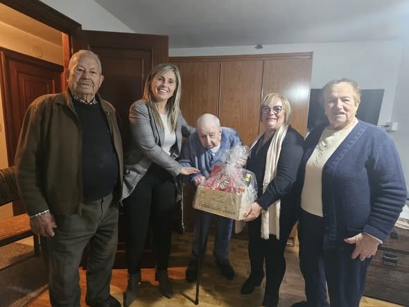 A alcaldesa, Mónica Rodríguez, a concelleira de Benestar Social, María José Pose, e a concelleira da Terceira Idade, Josefina Campos, achegáronse ata o seu fogar para felicitalo por este aniversario especial e agasallalo cun