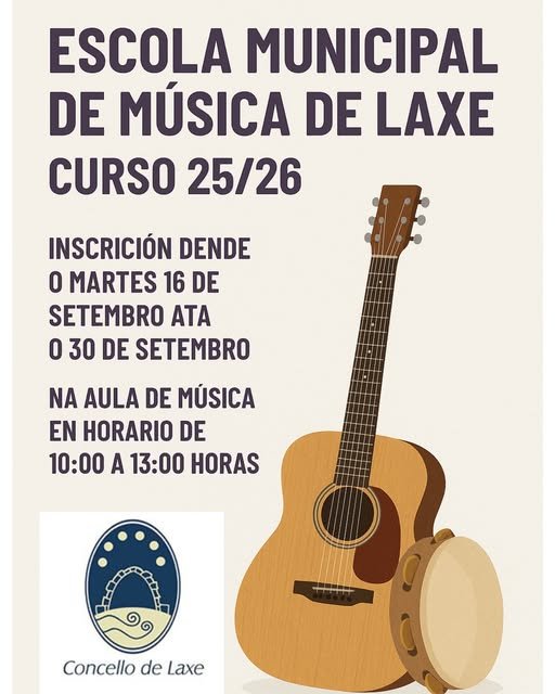 Xa está aberta a inscrición para a Escola Municipal de Música de Laxe no curso 25/26! ✨🎶