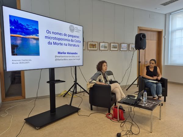 Hoxe volvemos encher de sabedoría, e tamén de público, as Escolas do Xardín Agra de Caldas. Neste emblemático edificio, cada vez máis cheo de vida, recibimos á escritora Marilar Aleixandre, moi ben acompañada por Sonia Gómez Castro, que falou sobre nomes de lugares da Costa da Morte. E desde ese mesmo punto partiu a ruta pola toponimia urbana carballesa guiada por Fernando Cabeza Quiles, un dos maiores expertos na materia.