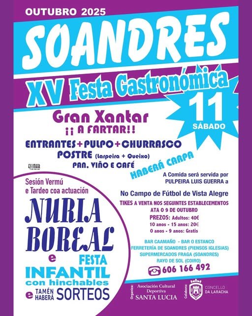 Cada ano a mediados de outubro non pode faltar a Festa Gastronómica da @acdsantaluciasoandres. A XV edición vaise celebrar o sábado día 11.